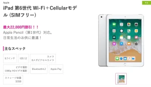 まさかの1円!!iPad 第6世代 Wi-Fi+Cellularモデル 一括1円、MNPで衝撃投げ売り!