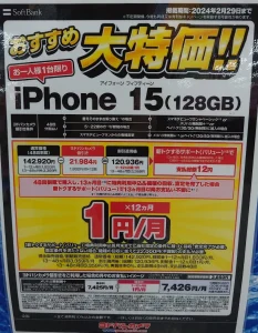 ヨドバシカメラ「iPhone15」衝撃の実質1円で投げ売り/ソフトバンク