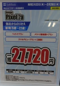 2024年2月23日の最新調査によると、ケーズデンキでGoogleの「Pixel7a」がMNP(他社からの乗り換え)を利用した顧客に向けて、信じられない一括販売価格27,720円で提供されています。この衝撃的な投げ売りキャンペーンは、スマートフォン市場において注目の的となっています。