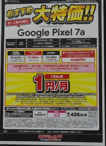 ヨドバシカメラ「Pixel7a」がMNPで実質1円で投げ売り