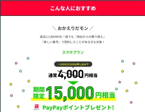 しかしこれまでiPhone14では実質1円の条件であれば必ず他社からの乗り換えが条件だったのでかなり緩和されたと思います。