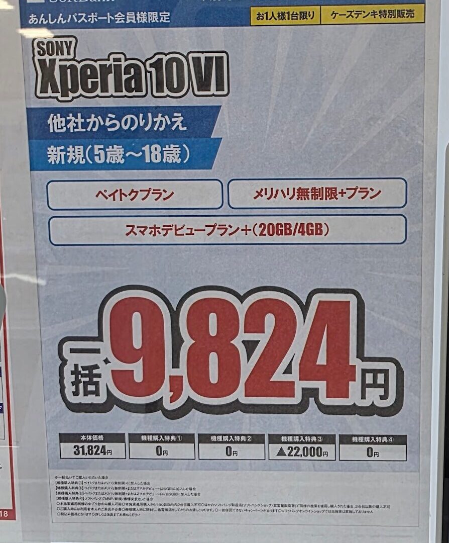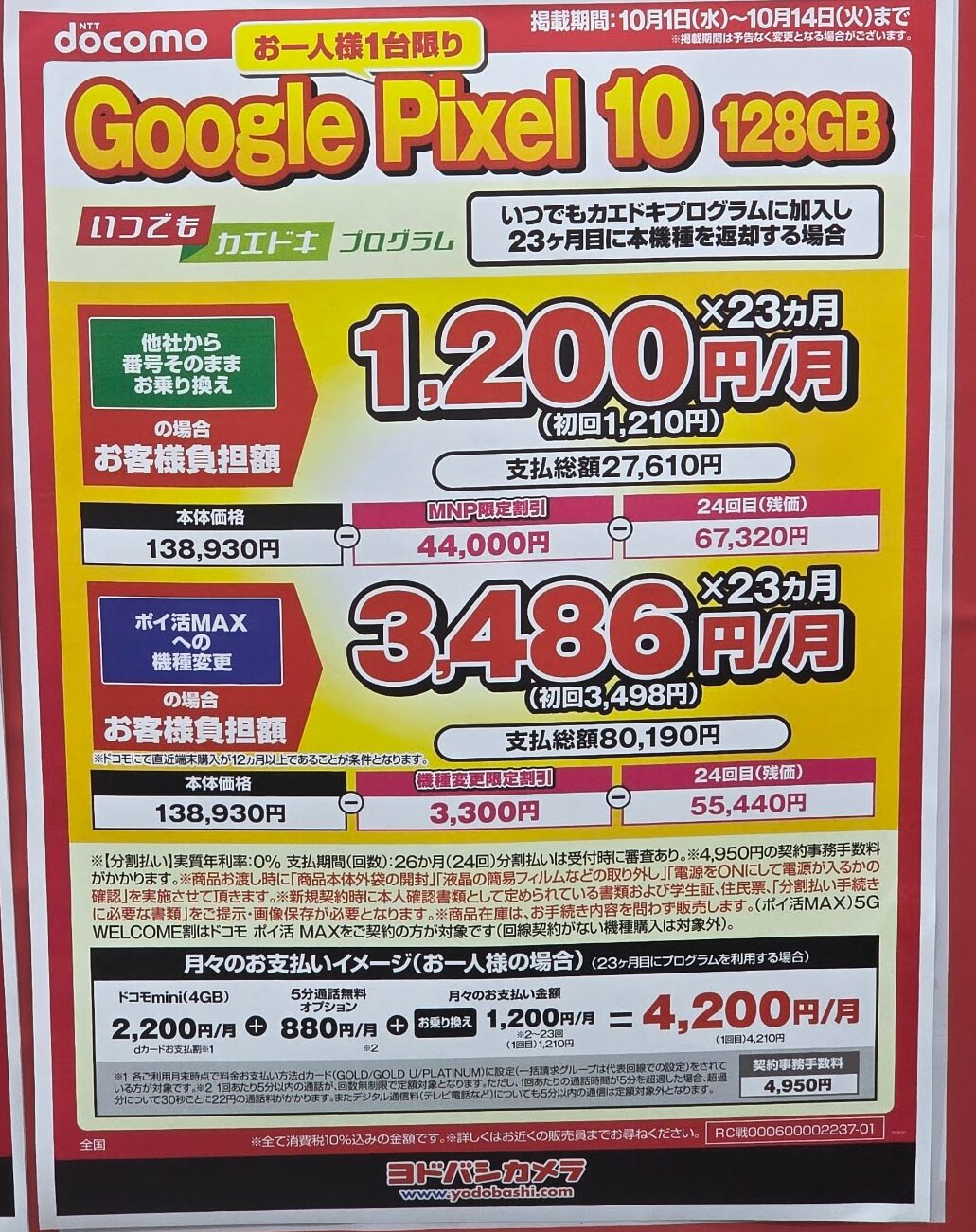 それではiPhone17、iPhone16、iPhone16e、iPhone15、iPhone14、Google Pixel 9、Google Pixel 9a、Google Pixel 8、Xperia、Galaxy S25など主要なスマートフォンの一括および分割販売の状況を家電量販店で調査してまいりました。