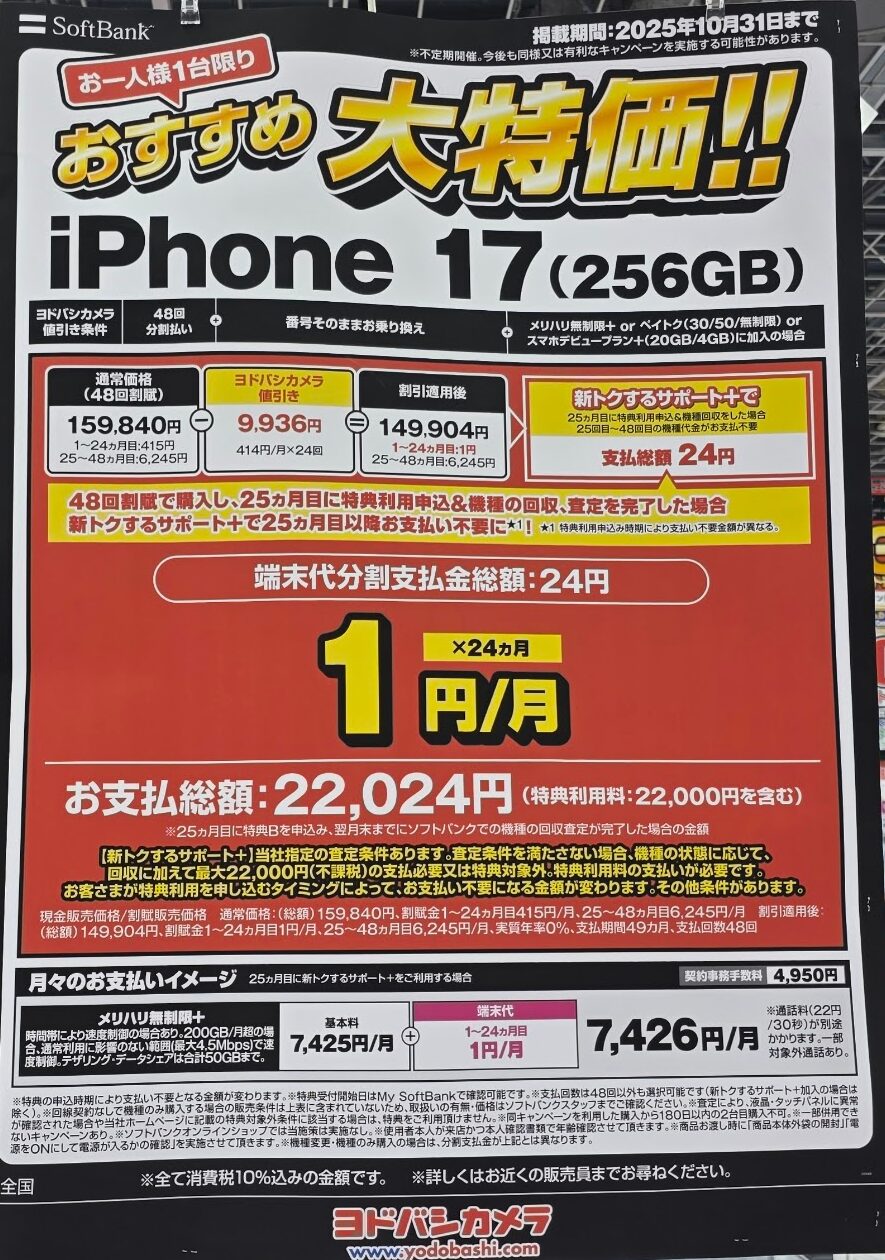 iPhone17が出る中でこの特典利用料の在り方は問題がありますが、ソフトバンクで施策を利用する以上は逃れられないので