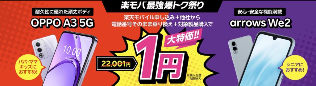 楽天モバイルがOPPO A3 5Gを大幅値下げ!MNP乗り換えなら実質1円の衝撃価格