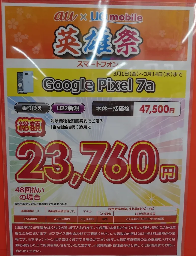 衝撃価格!某家電量販店でPixel 7aが大幅値下げ!