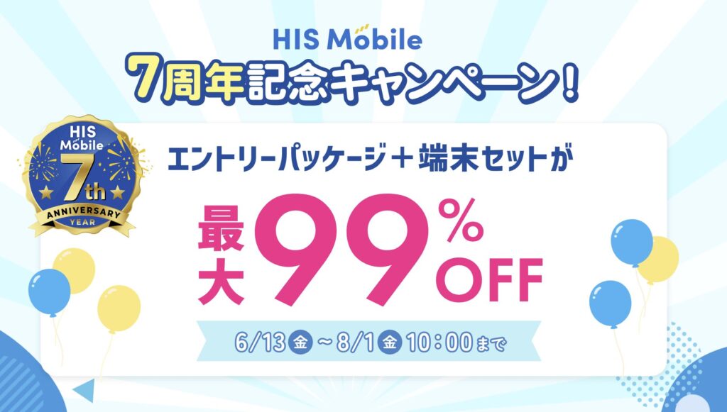 HISモバイル7周年記念でiPhone SEが254円!?99%オフの衝撃キャンペーン開催中