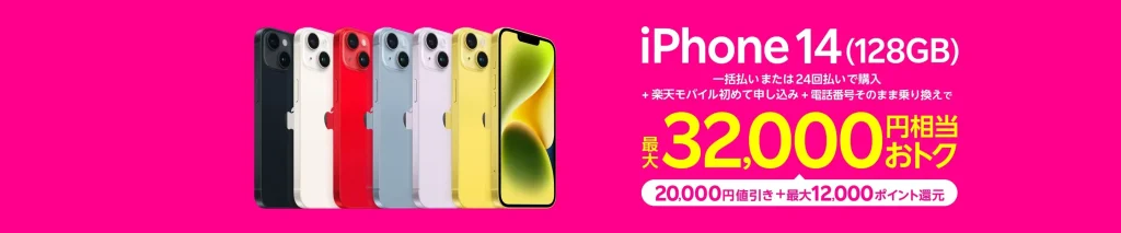 楽天モバイルが「iPhone 14(128GB)」購入者に対し、2万円の割引キャンペーンを開始