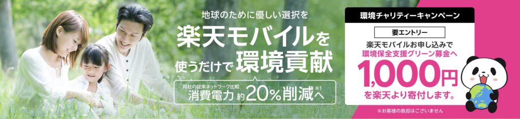 楽天モバイルに契約すると1000円が環境保全に寄付される!2026年1月まで実施中