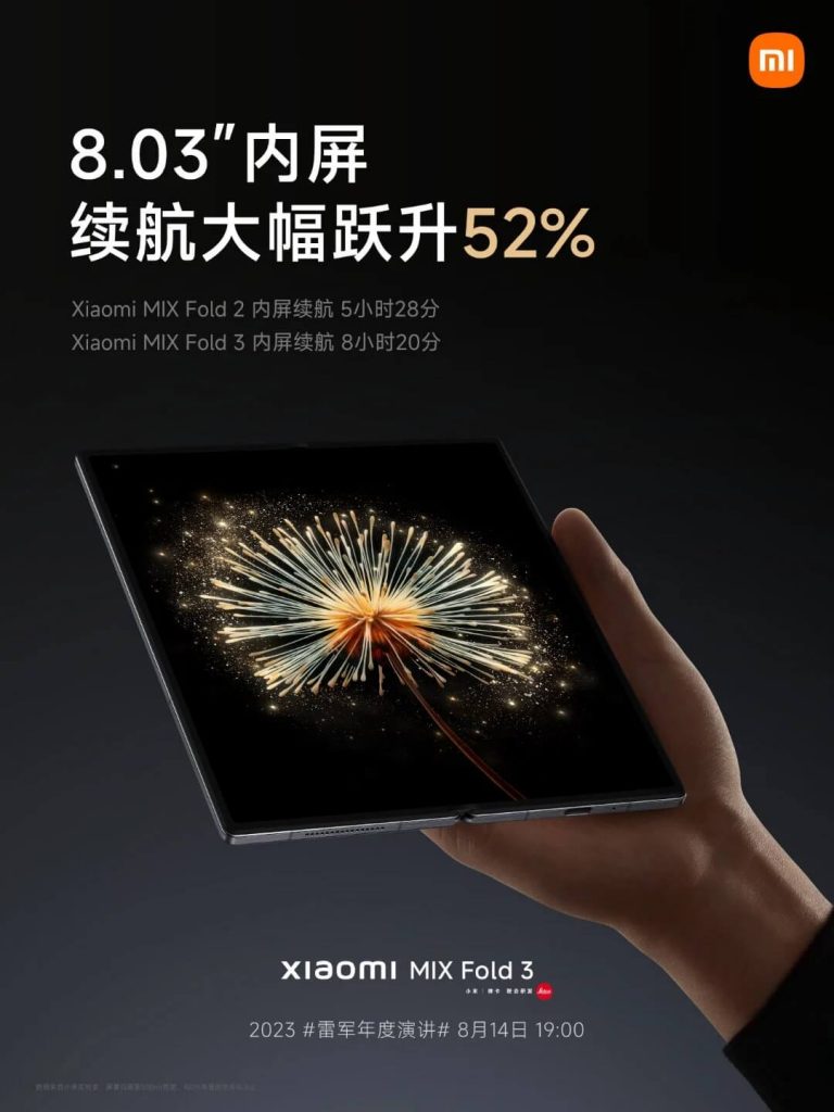 Xiaomi Mix Fold 3のディスプレイ詳細、バッテリー寿命を正式に確認