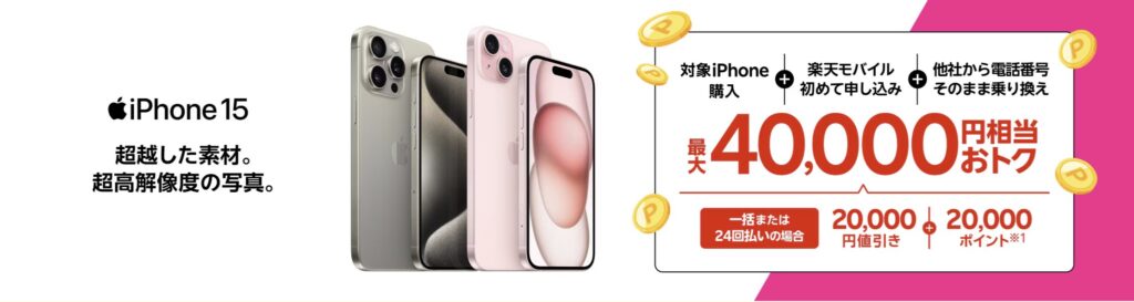 楽天モバイル、iPhone 15シリーズが大幅値下げ!MNPなら最大4万円オフの神キャンペーン開始