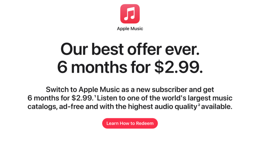 Apple Music、破格の6ヶ月2.99ドルキャンペーン実施中|日本は対象外も代替プランあり