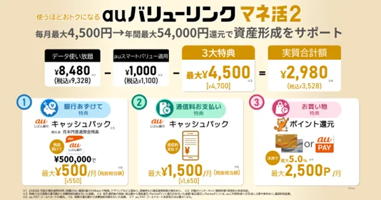 auๆฐๆ้ใใใๆดป2ใใฏใ้่ใตใผใใน้ฃๆบใงๆๅคง4,700ๅ็ธๅฝใฎ้ๅ ใๅใใใใใใฉใณใๅฎ่ณชๆ้กใฏ3,308ๅ็ธๅฝใใใ