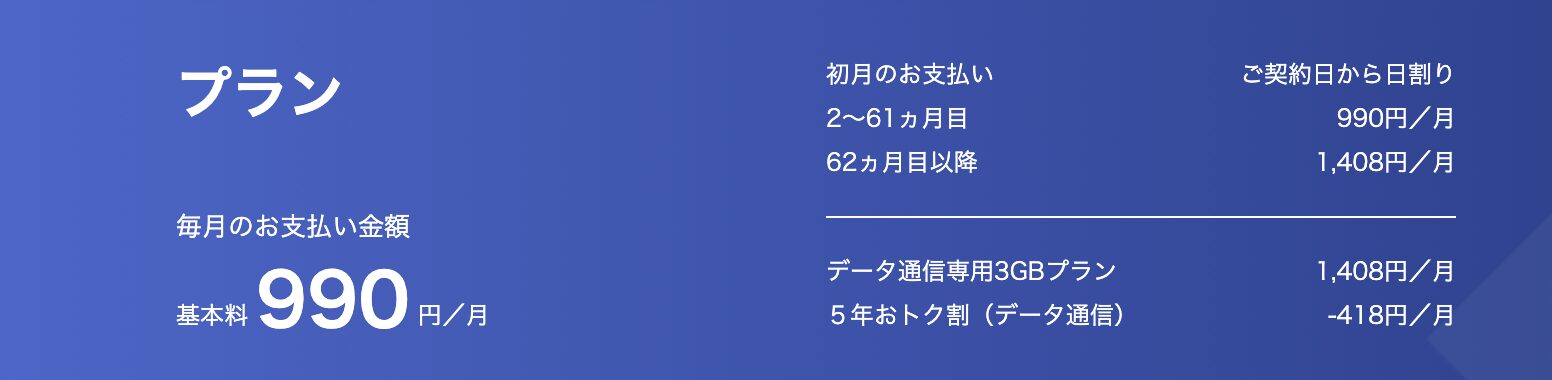回線契約自体に定期契約はないので、いつでも解約できます。維持費も5年間はそれなりに安め。