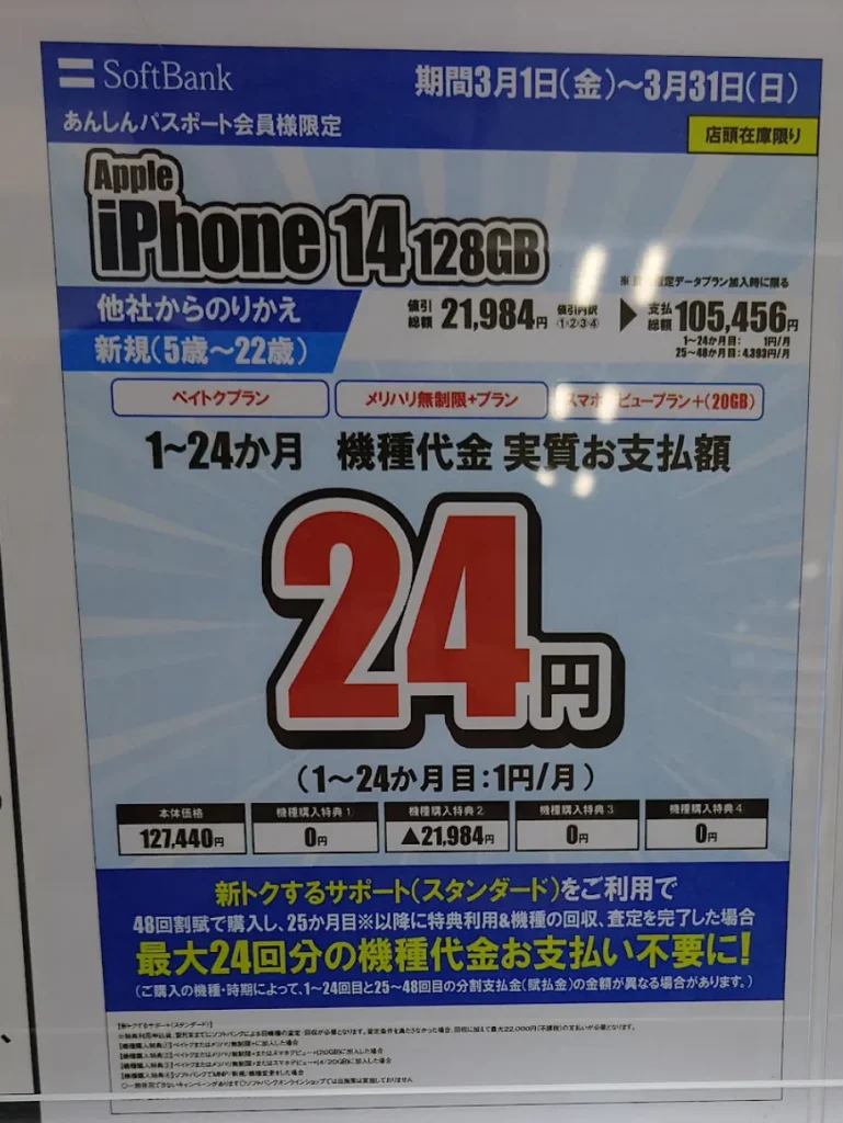 ビックカメラでiPhone 14が実質1円!? ソフトバンクがMNPユーザー向けキャンペーン発動! 2024年3月30日、ビックカメラとソフトバンクが手を組み、他社からソフトバンクへの乗り換え(MNP)を利用する顧客に対し、最新のiPhone 14を実質1円で提供するキャン... -