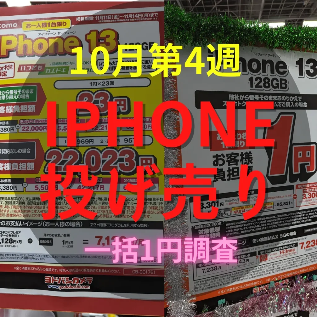 [st_toc] 今週は10月3週です。 とんでもないことにiPhone13がとうとう投げ売り開始となりました。 私が調査した店舗ではすでに投げ売り状態となっています。 マジでやばいことになっています。 先週からPixel8も投げ売り中ですが、今週はiPhone13も...