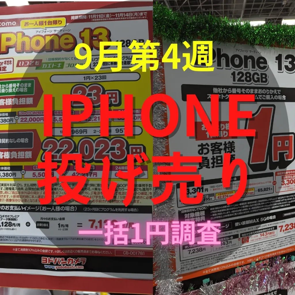 今週は9月4週です。 新型iPhone15がとうとう発売されました。もうすでに品薄状態となっており、 買取店では転売されているような状況です。 今週も家電量販店の価格調査を行ってきました。 iPhone14の施策がようやく追加され活気が出ていました。 さて、iP...
