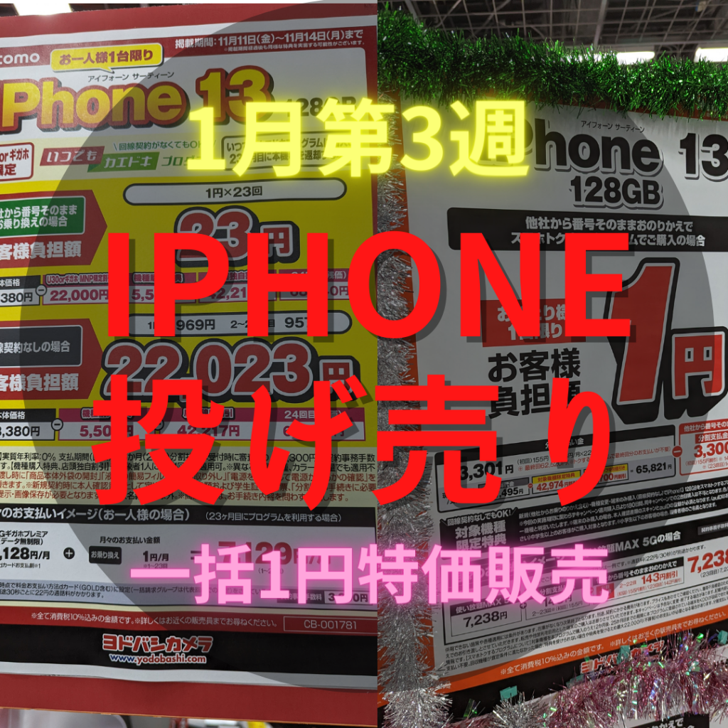 【2023年1月第4週】iPhone13一括情報!iPhone投げ売り量販店スマホ価格情報