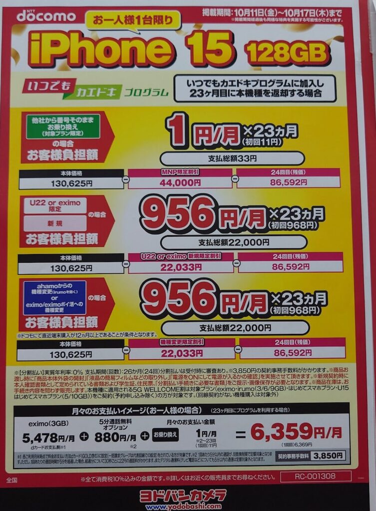 ヨドバシカメラ、iPhone 15MNPで月々1円の衝撃価格で提供! – ガジェットカフェ