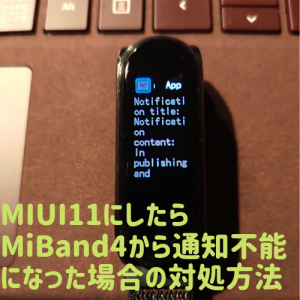XiaomiのMi Band4ですが、前回通知が来なくなったので色々と試した結果「Mi Bandage」というアプリを使用して、回避しました。このアプリはなかなか具合がよくて、大満足です。