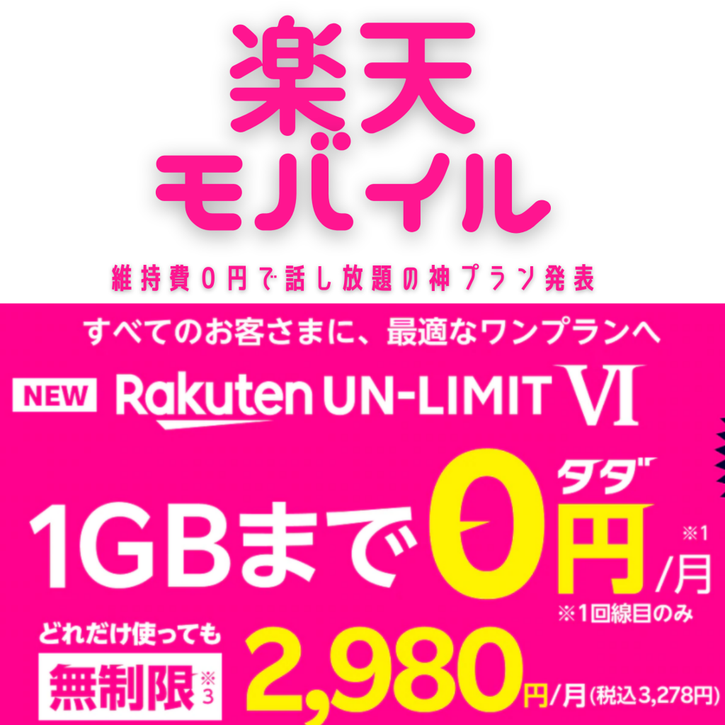 楽天モバイル 維持費0円運用ができる神プランを発表