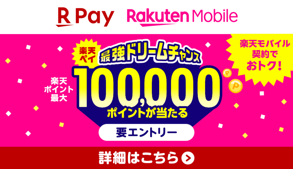 10万ポイント当たる!楽天モバイルユーザー限定「楽天ペイ」キャンペーンがエグい