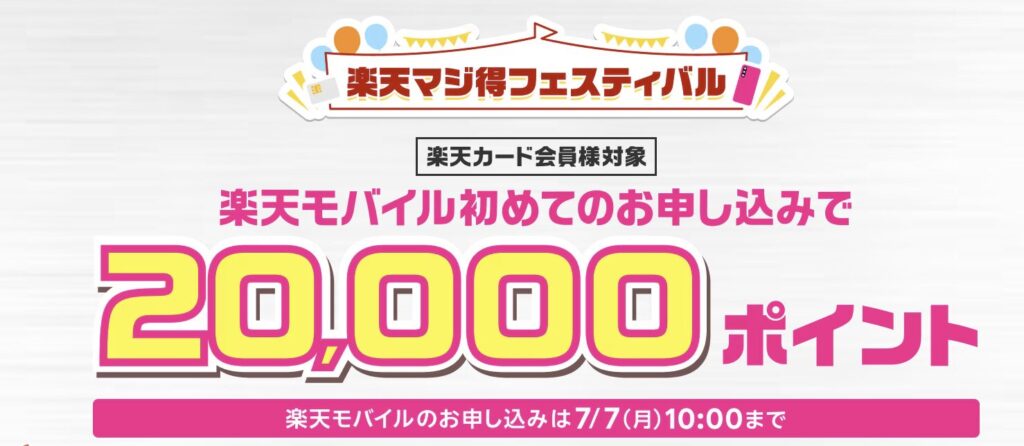 楽天モバイル初回契約で2万ポイント!楽天カード会員限定の大型キャンペーンが期間限定で開始